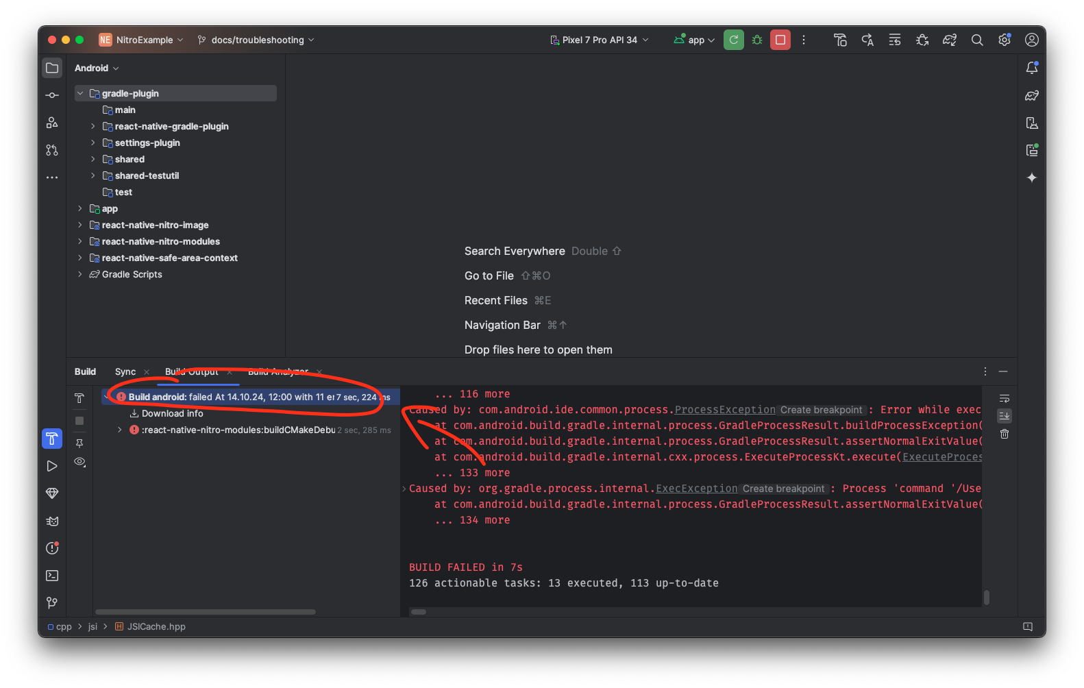 If your app fails to build after installing Nitro or a library powered by Nitro, make sure to post full build logs: